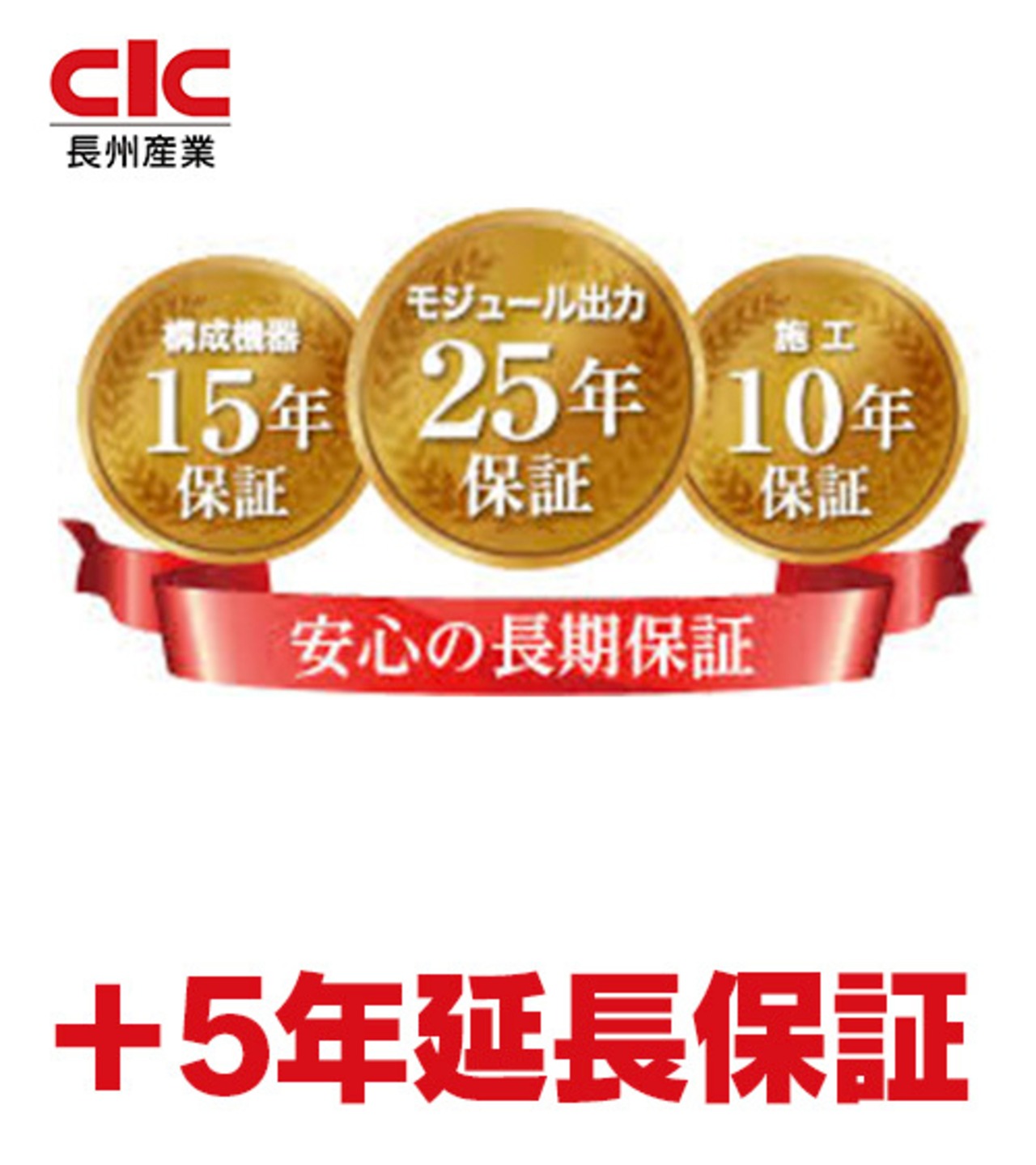 長州産業製品の標準保証に、+5年の延長保証をつけることができます。